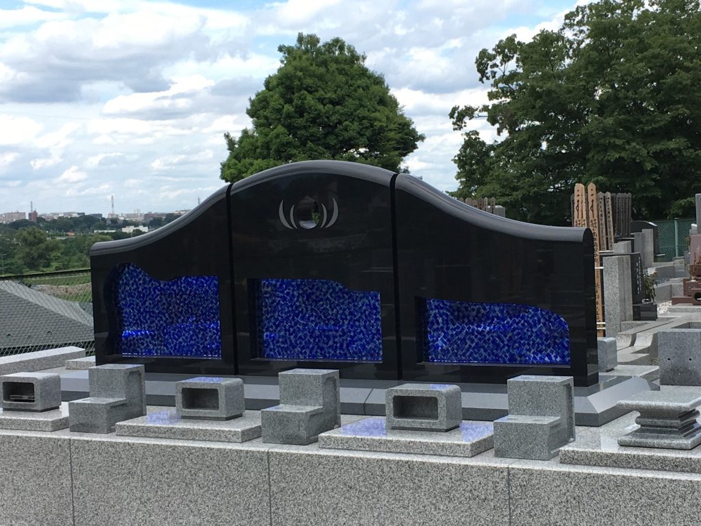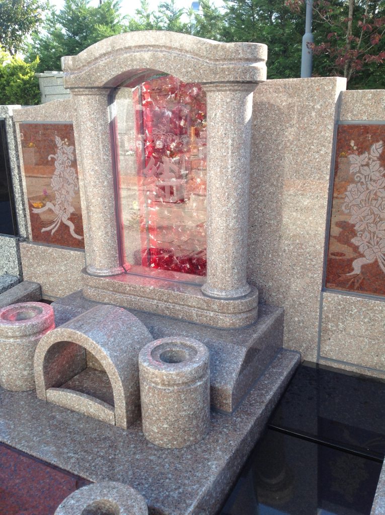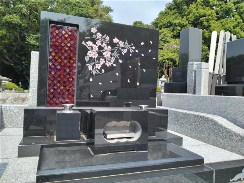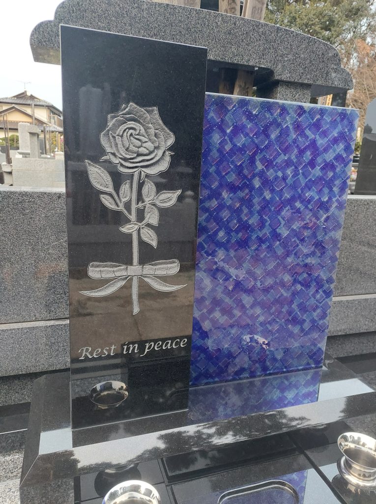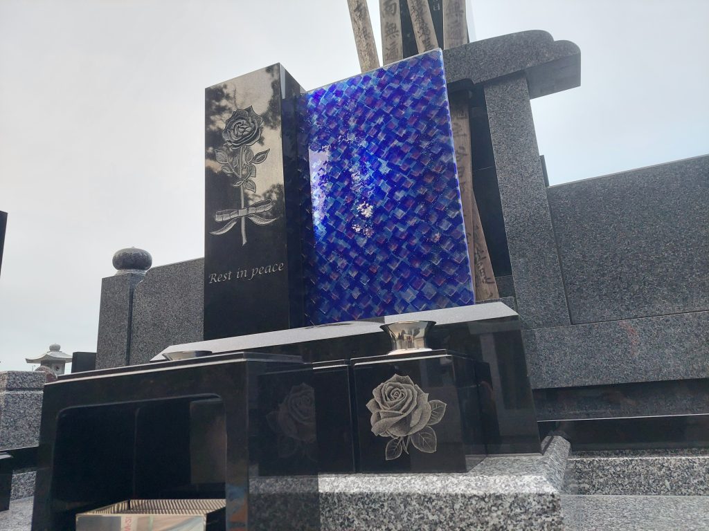 光を取り込んで輝く美しさと、色やデザインの自由度の高さが特徴で、様々な技法により、生み出されるアート性の高いガラスと自然の御影石を組み合わせることで、従来の石材に光と色彩が織りなす表現力が加わり、お墓のデザインの可能性を広げます。