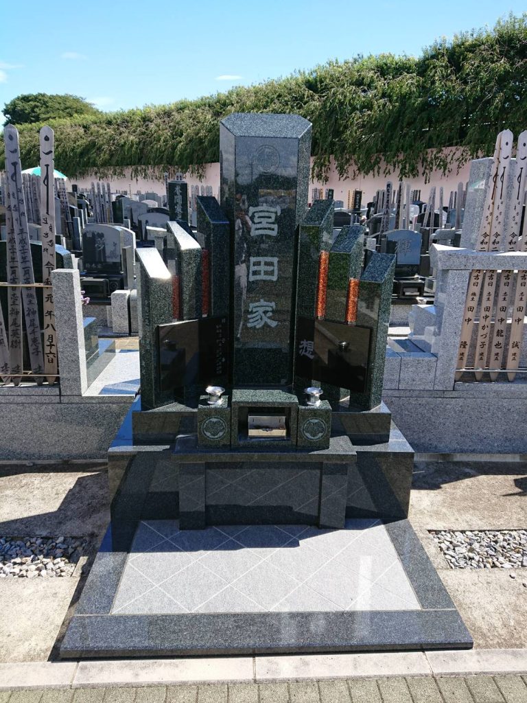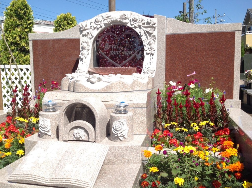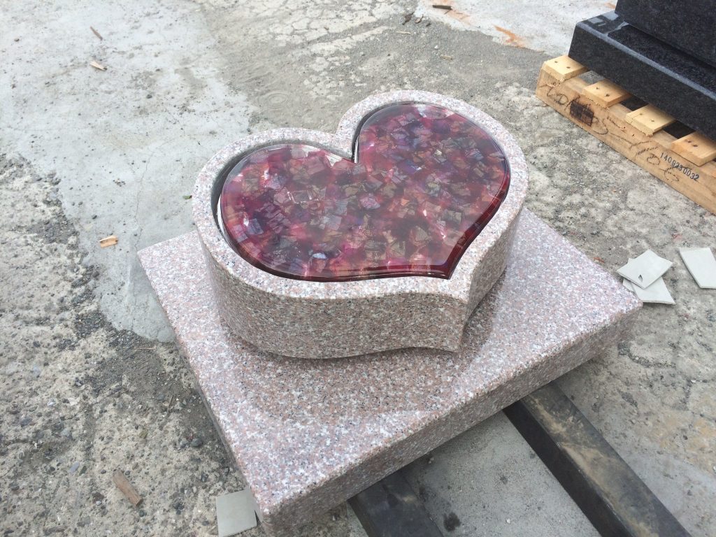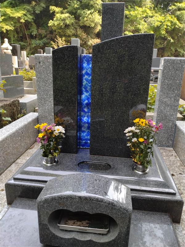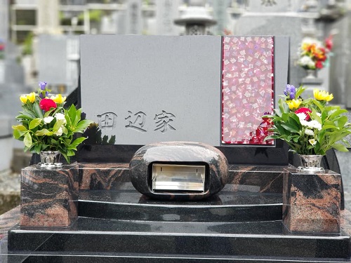 光を取り込んで輝く美しさと、色やデザインの自由度の高さが特徴で、様々な技法により、生み出されるアート性の高いガラスと自然の御影石を組み合わせることで、従来の石材に光と色彩が織りなす表現力が加わり、お墓のデザインの可能性を広げます。